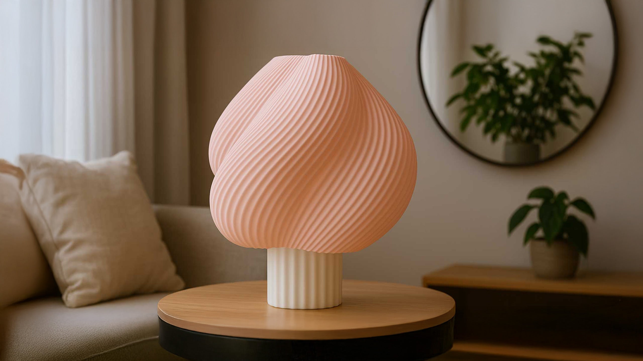 Aura Pink – Lámpara de mesa moderna rosa | Hecha a mano y única